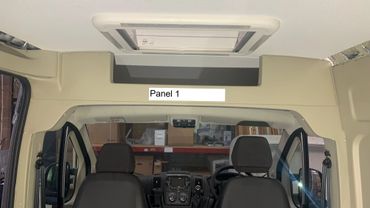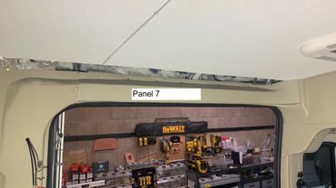 7: Our ceiling is around 10mm thick off the metal roof supports, 10mm is perfect for the panel above the cab shelf panel #1, if your ceiling is thicker panel #1 can be cut or planed down.
